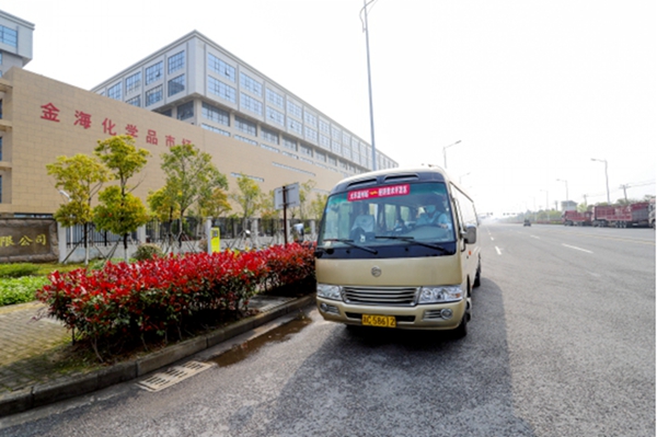 4月的首日,對于金海化學(xué)品市場和入駐企業(yè)員工來說,是個值得慶祝的日子。位于濱海二十五路的金?;瘜W(xué)品市場自2016年開始運(yùn)營以來,一直沒有直達(dá)的交通線路,既不便于市場員工的上下班,也不便于發(fā)展周邊的縣市客戶。市場方一直在為公交線路的開通作努力,從現(xiàn)在起,“公交出行”將成為市場員工進(jìn)出的標(biāo)配。